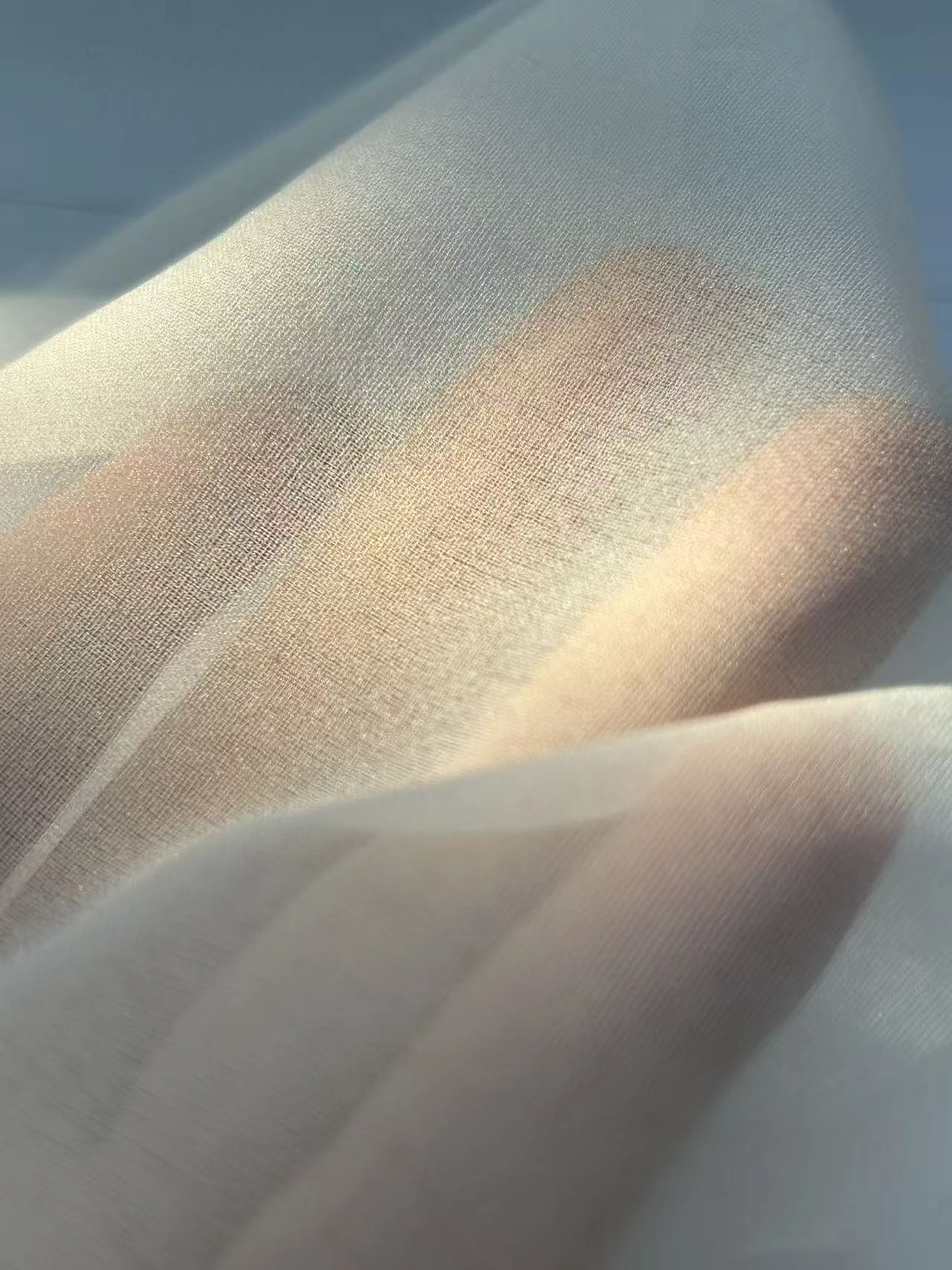 15D/20D という用語は、糸のデニール数を指します。従来の芯地では 50D、さらには 75D の糸が使用されていますが、15D 糸の細さは人間の髪の毛の数分の一にすぎません。このような超極細繊維で織られた基布は、極めて低いグラム重量を誇り、まるで無重力のような触感を実現します。まさに衣服の「第二の皮膚」のようなものです。しかし、「薄さ」=「緩さ」ではありません。高密度織り加工を採用した高品質15D芯地。細い糸にもかかわらず、緻密に配置されているため、生地の厚みを増すことなく寸法安定性を保ち、軽量かつ高反発なネットを形成します。中国盛虹芯地工場